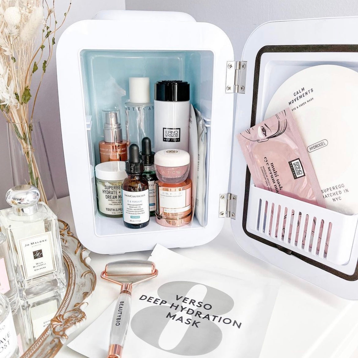 "For the beauty-lover who wants all their products organized perfectly and stored safely, this fridge is the ultimate gift. It also helps your products last longer, and the cooling effect is perfect for those puffy-eye products after party nights."
