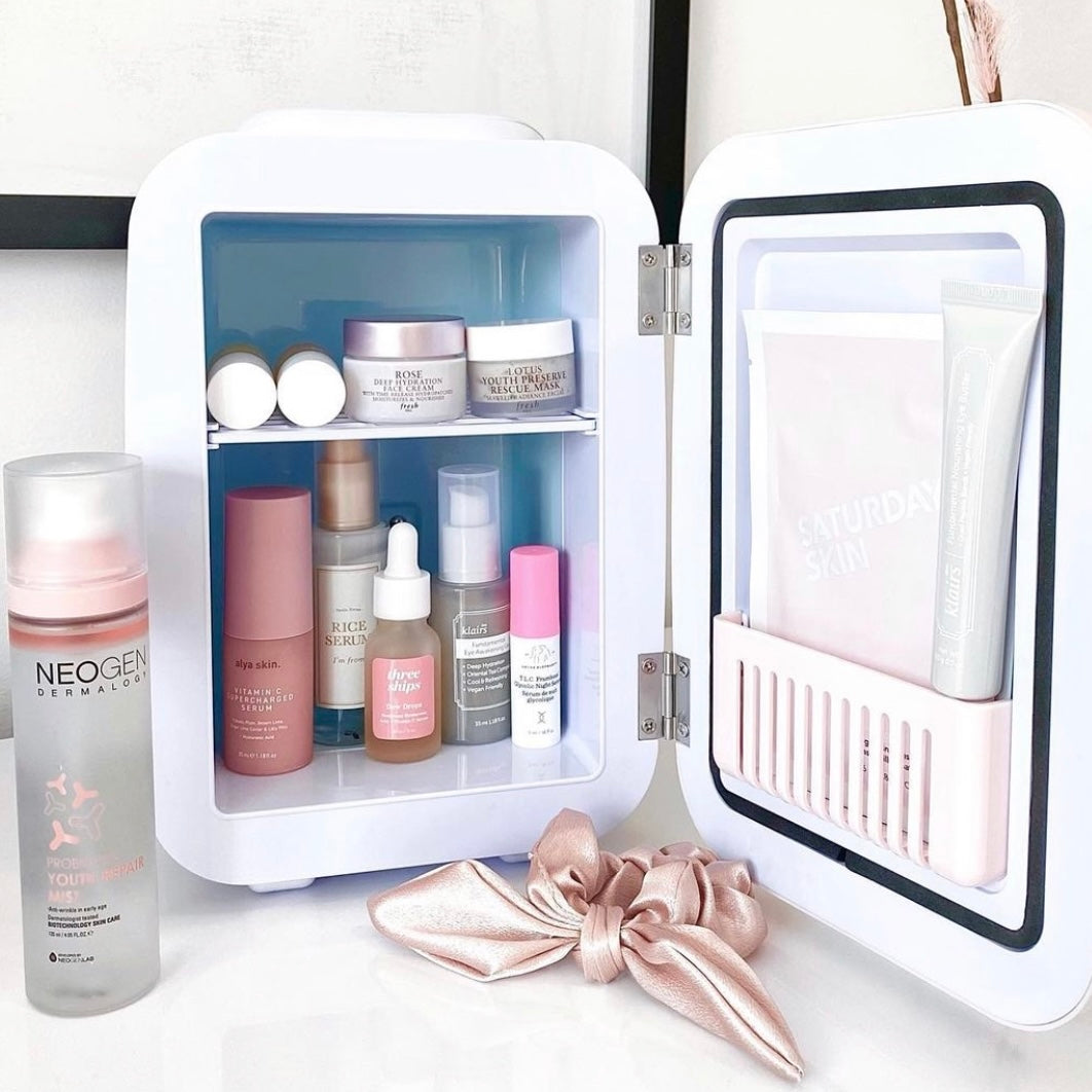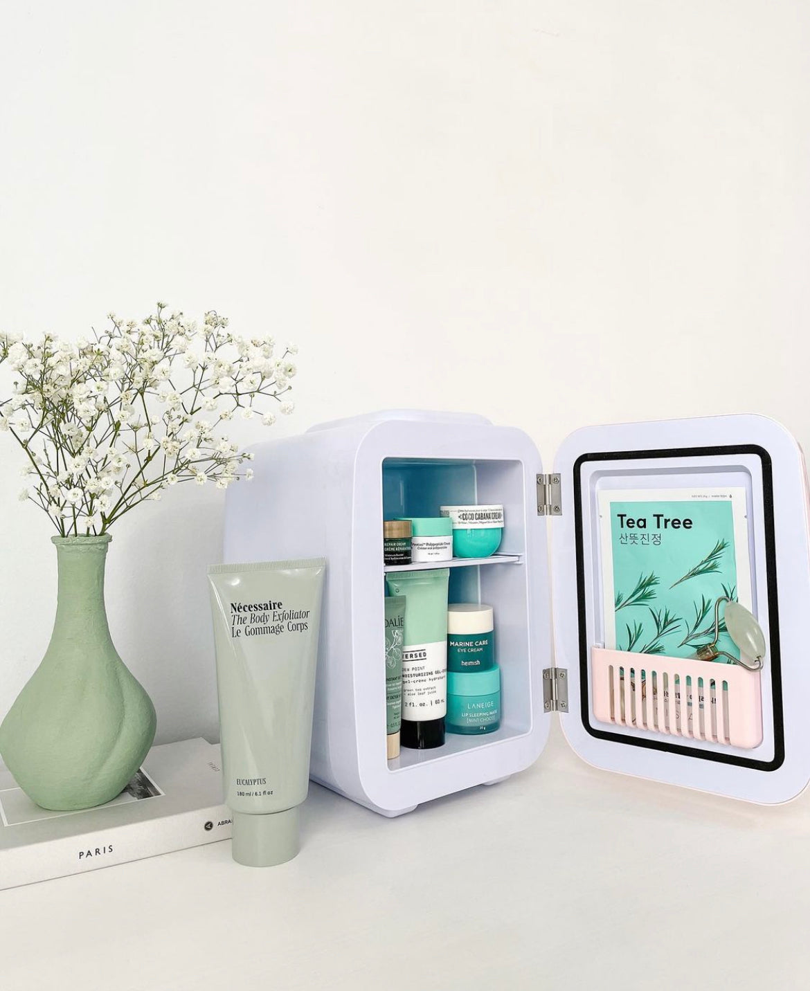 It’s compact, portable and looks so cute on my vanity, and the most important part is Makeup Fridge saved me trips to my kitchen fridge to get my Cryo Roller every morning.